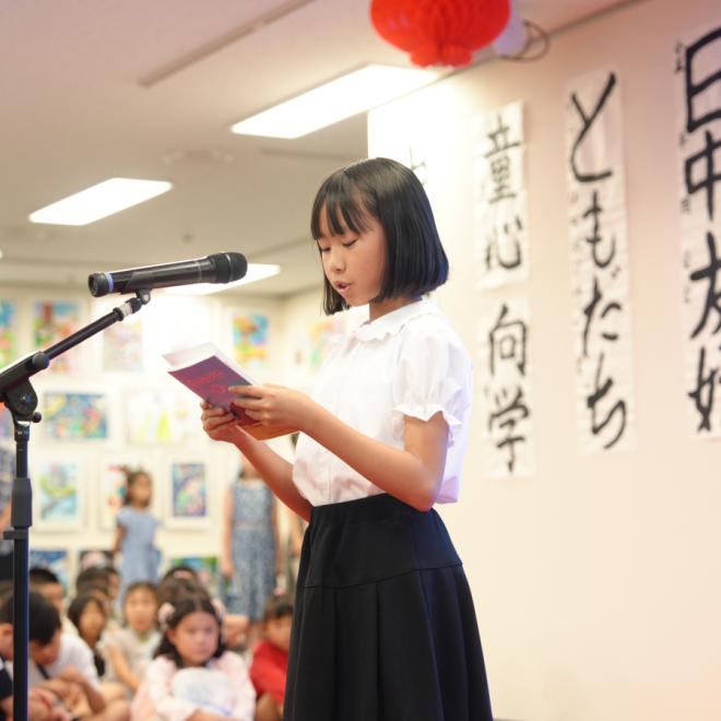 在当天的开幕式上,来自中国的青少年代表蔡牧晗同学以及来自日本的青少年代表正津みのり同学登台发言。。他们用朴实却充满力量的语言,展示了中日青少年对艺术的热情、对彼此文化的尊重,以及对美好未来的共同向往。